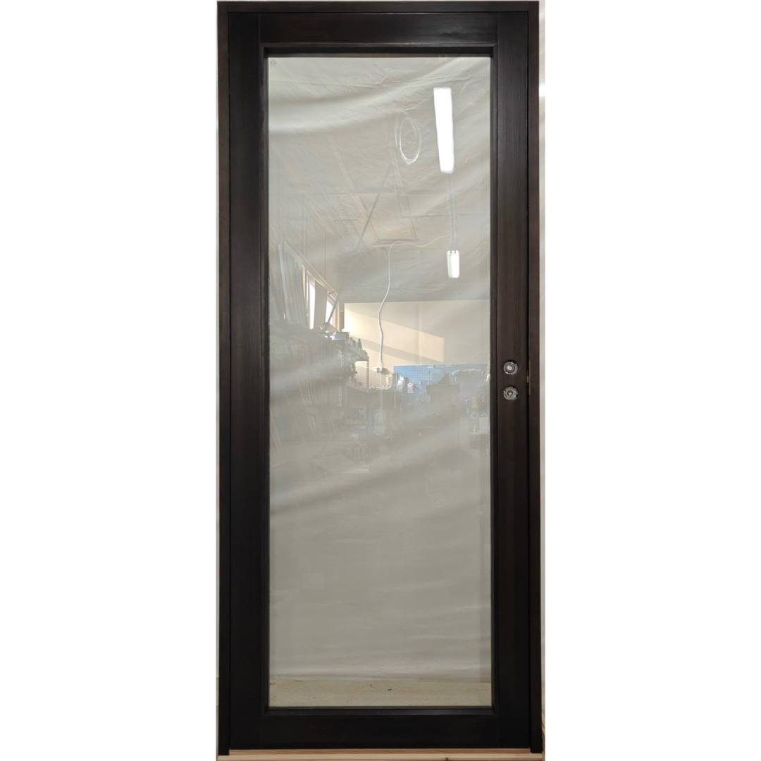 Lasiovi toimitetaan Rw37db äänieristelasilla ja se on valmistettu täysisauvaisesta männystä. Ovi on kuultokäsitelty sävyllä Tikkurila Piki. Karminsyvyys 92 mm. Magneettilukitus.