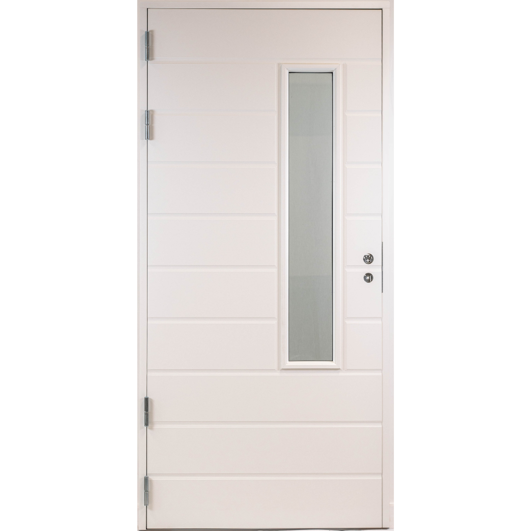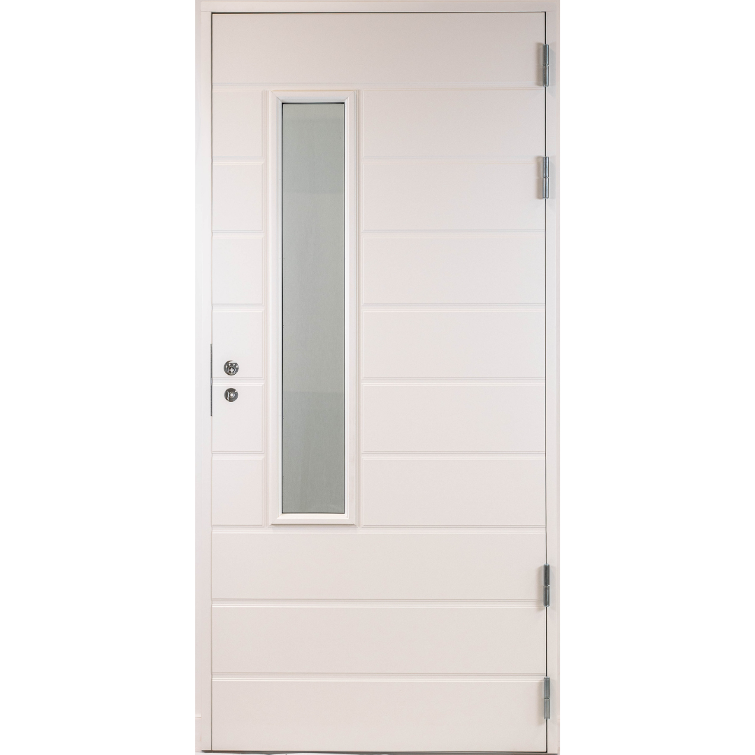 Myllyn ovien Etu-Keihäri on ulko-ovi juuri sopivan kokoisella, pystysuuntaisella ikkunalla. Ovi sopii tyyliltään moneen erilaiseen taloon ja on erinomainen valinta myös silloin, kun oveen halutaan maltillisen kokoinen ikkuna. Valkoinen ulko-ovi on aina varma ja tyylikäs valinta.