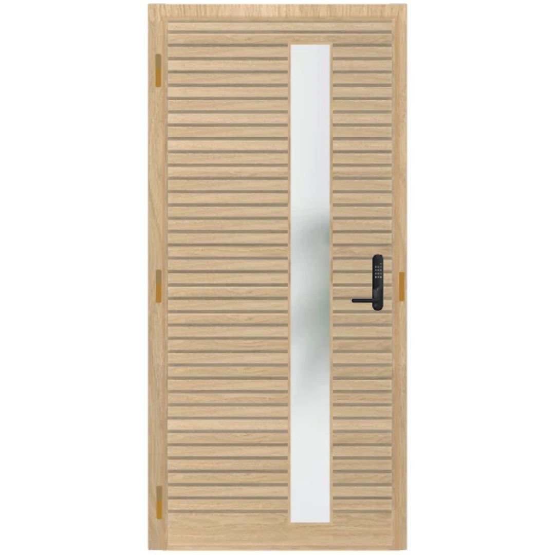 Jyrävä ulko-ovi on kotimaisen Puustamon valmistama nykyaikaiseen arkkitehtuuriin sopiva ulko-ovi. Pystylasi yhdessä kapean vaakapaneelin kanssa tekee Jyrävä-ovimallista raikkaan kokonaisuuden. Oven ulkonäköä täydentää alareunassa oleva yksittäinen leveä vaakapaneeli. Tämä upea ja moderni ulko-ovi on valmistettu oksattomasta täysisauvaisesta männystä.