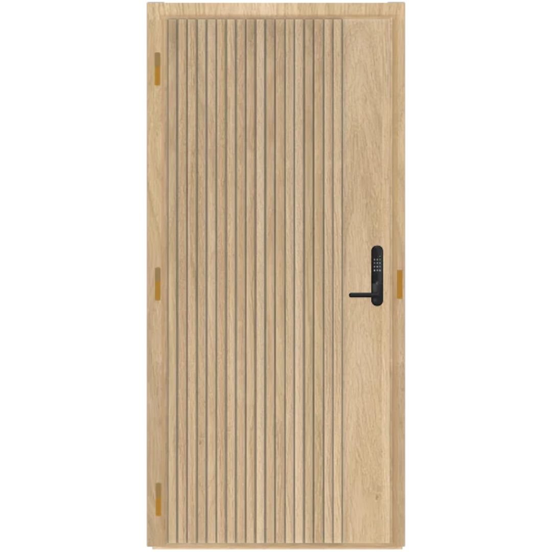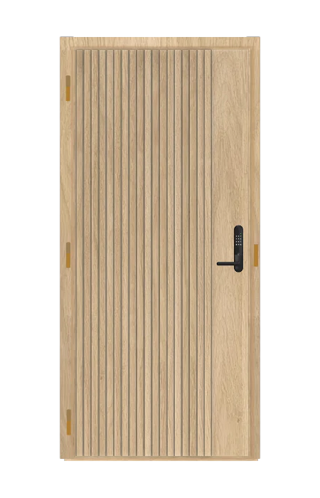 Saarua on kotimaisen Puustamon uusimpia tulokkaita. Tämä upea ja moderni ulko-ovi on valmistettu oksattomasta täysisauvaisesta männystä ja siinä on kapea pystypanelointi.