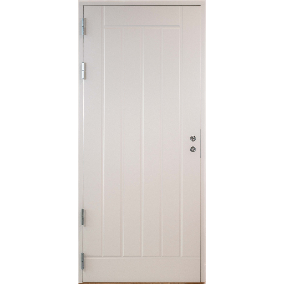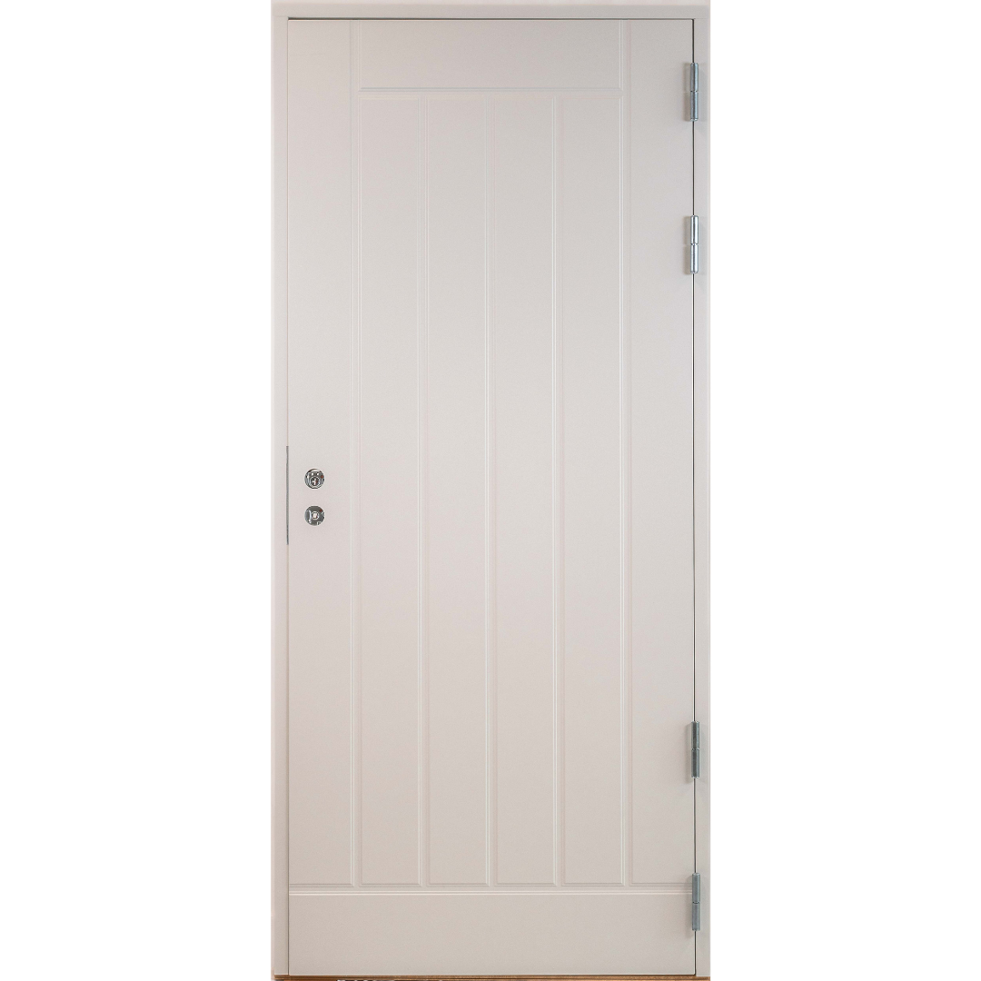 Myllyn ovien Toulat on pystyuritettu ulko-ovi kahdella tiivisteellä. Valkoinen Toulat-ovi kestää aikaa ja sopii erinomaisesti eri tyyppisiin taloihin ulko-oveksi, varaston oveksi tai takaoveksi.